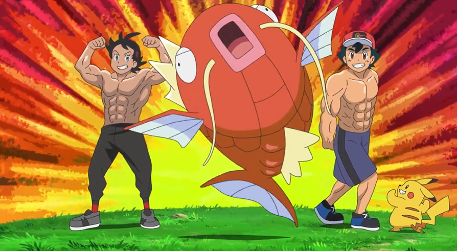 Auf dem Smart-Rotom sehen Ash und Goh ein Video von Tompador, einem wohl bekannten Karpador-Trainer, zu einem Karpador-Sprungwettbewerb. Goh, der erst ein sprunggewaltiges, riesiges Karpador gefangen hat, überlegt, mit diesem an dem Wettbewerb teilzunehmen. Allerdings hat dieses stark an Gewicht zugelegt. Das scheint Goh aber nicht groß zu sorgen, da besagter Kasuking auch ein bekannter Experte darin ist, Karpador zu fit zu machen und dafür Trainingsvideos anbietet. Goh und sein Karpador sind dadurch Feuer und Flamme beginnen mit dem Training für den Wettbewerb. Auch Ash und Pikachu schließen sich den beiden an. Durch intensives Training gelingt es ihnen, Gohs Karpador und sich selbst in eine hervorragende Form zu bringen.