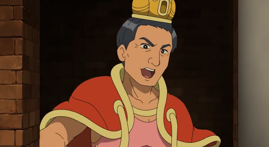 Ash und Goh sind mit ihren Pokémon auf der sogenannten Flegmon-Insel, auf der, wie der Name schon sagt, zahlreiche Flegmon leben, welche die beiden interessiert beobachten. Goh will die Gelegenheit nutzen und ein Flegmon fangen. Während Ash gemütlich eine Nudelsuppe schlürft, macht er sich daran, ein passendes Flegmon auszuwählen, als er auf einmal ein Laschoking bemerkt. Dieses kommt, ebenfalls eine Nudelsuppe schlürfend, auf die beiden zu. Anstelle eines Flegmons nimmt sich Goh vor, das Laschoking zu fangen, das jedoch mit Hilfe seiner Psychokinese Gohs Pokéball spielend abwehren kann. Das Laschoking zeigt sich nun interessiert an Ashs restlicher Nudelsuppe, die dieser ihm gerne überlässt. Mit seiner Psychokinese lässt es die Nudeln stilvoll in die Höhe steigen, um sie dann gekonnt in sein Maul fallen zu lassen. Im Tausch gegen seine Krone nimmt es sich dann mit Hilfe seiner Psycho-Kräfte Ashs leeren Nudelsuppenbecher. Laschokings Krone landet so stattdessen auf Ashs Kopf, was zu einer plötzlichen Verhaltensänderung bei diesem führt. Dieser bezeichnet sich nun als Flegmon-Meister. Goh, Kickerlo und Pikachu versuchen erfolglos, Ash die die Krone wieder abzunehmen, da er allen ihren Versuchen ungewöhnlich flink ausweichen kann. Gemeinsam mit Goh will Ash nun die Flegmon in eine positive Zukunft führen, weshalb er seinem Freund anbietet, mit Hilfe eines Muschas zu einem Lahmus zu werden. In einem überraschenden Moment gelingt es Kickerlo, Ash die Krone vom Kopf zu kicken, sodass dieser umgehend wieder normal wird. So landet die Krone allerdings auf Gohs Kopf und nach einem weiteren Kick Kickerlos auf Pikachu. Dieses entledigt sich der Krone mit Hilfe seines Donnerblitzes, von dort landet sie bei Kickerlo. In der Folge wandert die Krone nochmals zahlreich hin und her, amüsiert beobachtet von den Flegmon sowie dem Laschoking, welches nun den Nudelsuppenbecher auf dem Kopf trägt. Unterbrochen wird die Szene erst, als plötzlich Gohs Karpador aus dem Weltall auf die Erde schießt und auf der Flegmon-Insel landet. Aufgrund des Aufpralls kommt es zu einem Rücktausch des Nudelsuppenbechers, der nun auf Ashs Kopf gelandet ist, sowie Laschokings Krone, die dieses nun wieder auf hat und auf der nun Gohs Karpador steckt. Goh freut sich sehr über die Rückkehr seines Pokémon.