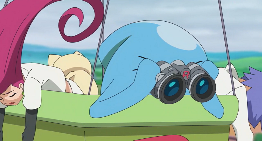 Team Rocket ist ebenfalls am Fluss gestrandet, jedoch außerhalb der Stadt. Sie bemerken, wie sich ein Morpeko an ihrem Proviant bedient. Wütend wirft Jessie eine leere Konservendose nach dem Pokémon, verfehlt es jedoch und trifft dafür das dahinter unsichtbar sitzende Memmeon an dessen Hinterkopf. Morpeko läuft zwar davon, doch Jessie greift sich das ausgeknockte und daher nun sichtbare Memmeon. Da sie im Hintergrund nun die Memmeon-Rufe von Ash und Goh hören, zählt Team Rocket Eins und Eins zusammen.