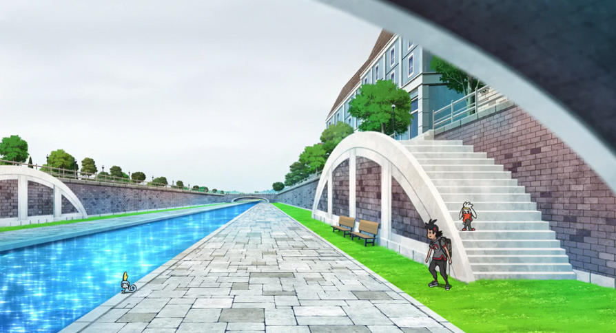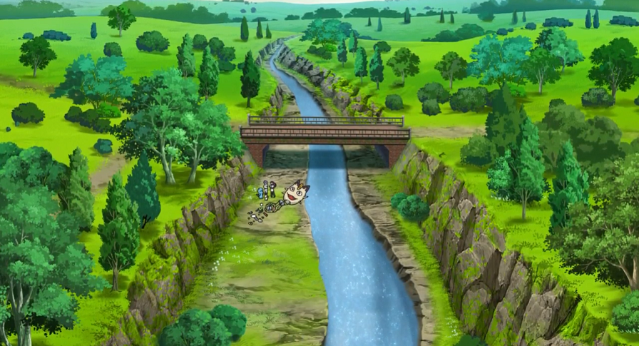 Ash und Goh machen sich somit erneut auf die Suche nach Memmeon. Da es auf seinem Weg zahlreiche Leute ebenfalls zum Weinen bringt, gelingt es Ash und Goh relativ gut, die Verfolgung aufzunehmen, bis sich irgendwann dessen Spur verliert. Daher beschließen die beiden, sich zu trennen. Während Ash erfolglos im Park nach Memmeon Ausschau hält, hat Goh mehr Glück und findet sein Pokémon am Fluss, der durch die Stadt verläuft. Er entschuldigt sich bei Memmeon, es so erschreckt zu haben, das jedoch daraufhin, wieder heulend, im Fluss verschwindet. Ash taucht nun auf und gemeinsam folgen die beiden dem Fluss flussabwärts.