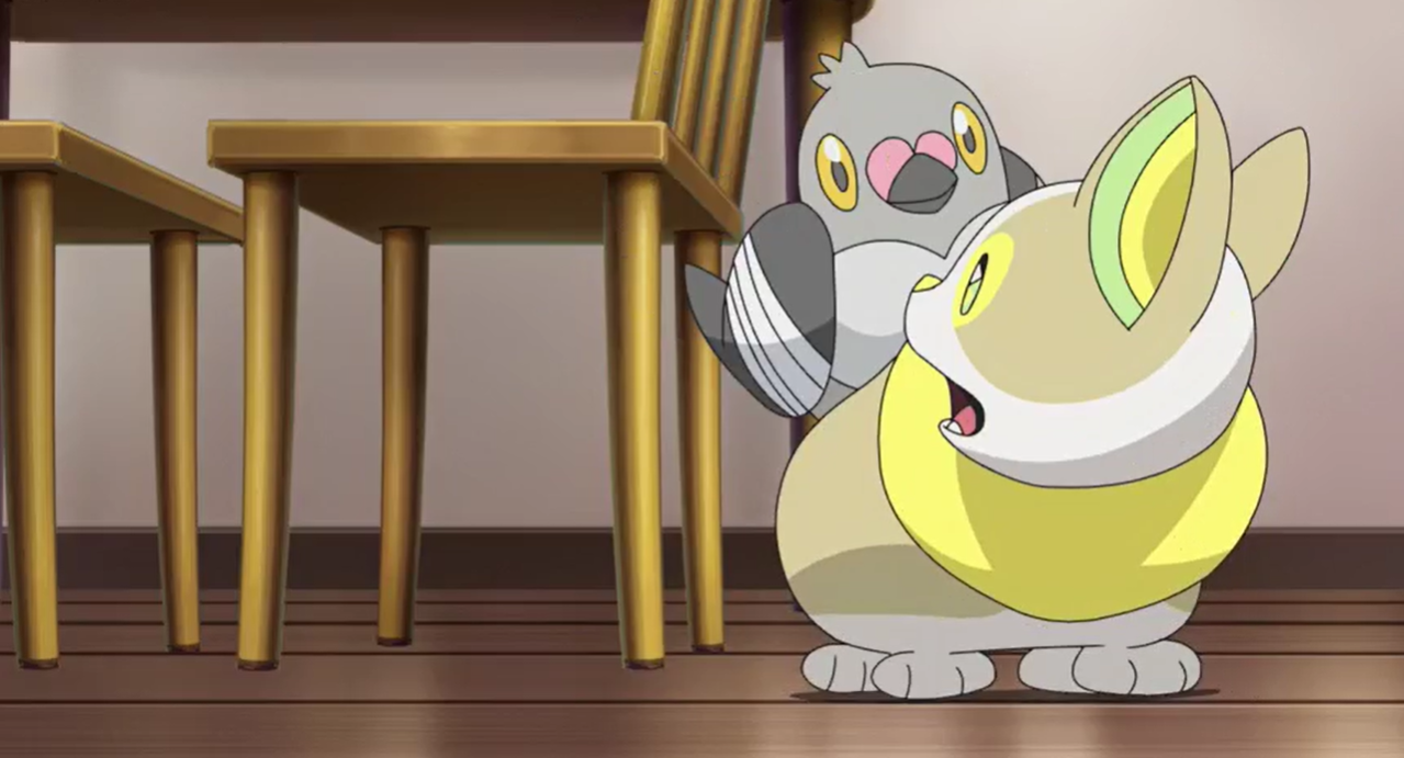 Als Chloe von der Schule zu Hause ankommt, wird sie gleich von Voldi und Dusselgurr begrüßt. Da das Flug-Pokémon von Voldis Hintern auf ihre Schulter fliegt, ergreift Voldi die Eifersucht und es beginnt zu murren. Das ruft Ash und Goh auf den Plan, die mit Pikachu und Kickerlo aus dem Labor eilen, um zu sehen, was los ist. Professor Kirsch, der ebenfalls dazustößt, klärt die beiden über Voldis Eifersucht auf. Chloe beteuert, sie versuche, beide Pokémon gleich zu behandeln. Laut Professor Kirsch sei Voldis Eifersucht im Vergleich Chloes damaliger Eifersucht jedoch relativ gering.