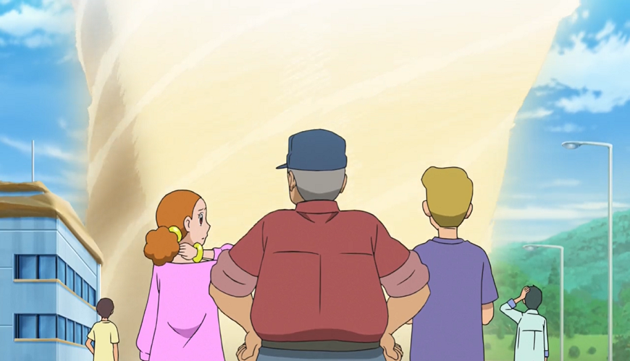 Derweil werden einige Bewohner in Malvenfroh City in der Hoenn-Region Zeuge eines gewaltigen Sandsturmes. Aus diesem vernehmen sie ein angenehmes, singendes Geräusch, weshalb sie sich, wie hypnotisiert, direkt in den Sandsturm begeben.