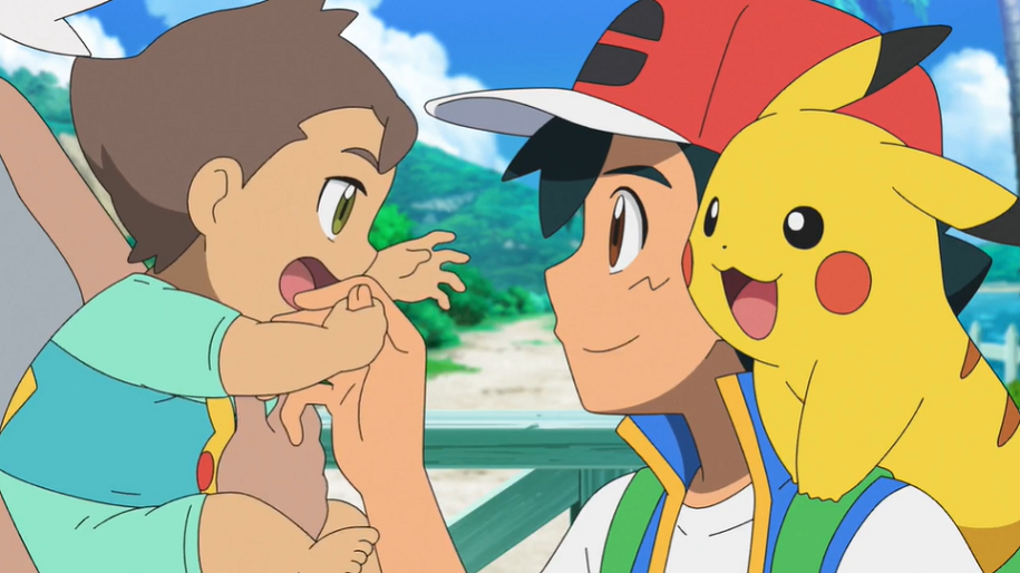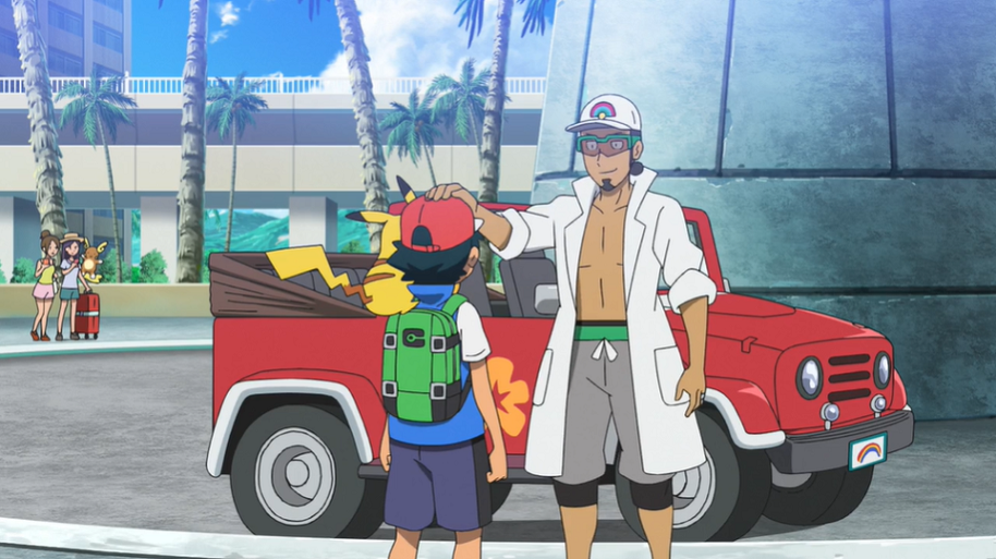 Vor Kukuis Haus am Strand wird Ash von Professor Burnett begrüßt, die ein Baby in den Armen hält. Dabei handelt es sich um den Sohn der beiden, Lei. Sie stellt ihm Ash als dessen großen Bruder vor. Auch Goh wird herzlich willkommen geheißen.