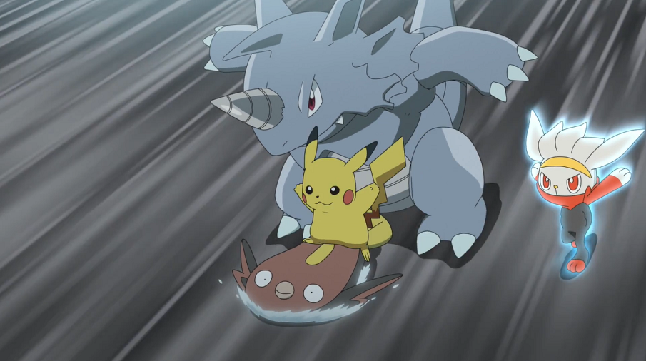 Da die ersten Kampfversuche gegen Zapdos aussichtslos waren, beschließen Ash, Goh und Team Rocket, sich zusammenzutun, um Zapdos in einem Raid-Kampf gemeinsam zu bekämpfen. Die ersten Ansätze der Zusammenarbeit sehen zwar vielversprechend aus, jedoch endet der Kampf auch schnell wieder, als die Attacken der Pokémon alle Zapdos verfehlen und dieses durch das Dach flieht. Schnell wollen sich Ash und Goh aufs Dach begeben, um Zapdos weiter zu bekämpfen. Ash wird dabei aber von Team Rocket zurückgehalten, das seine Chance wittert, sich Pikachu schnappen zu können. So macht sich Goh alleine auf den Weg aufs Dach, während Ash den Kampf mit Team Rocket aufnimmt. Gegen deren Boden-Pokémon Rizeros und Flunschlik tut sich Pikachu mit seinen Elektro-Attacken anfangs aber sehr schwer.