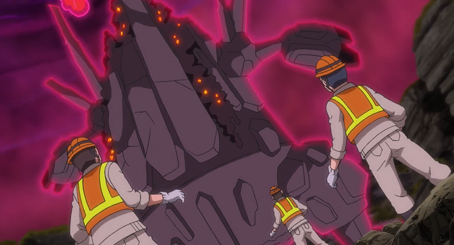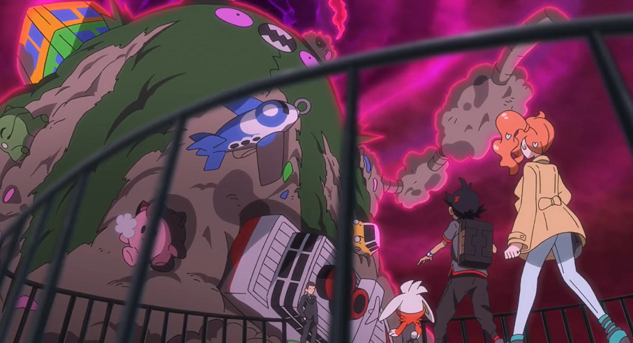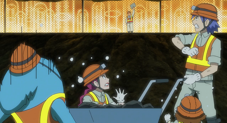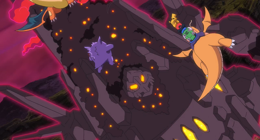 Ash und Delion gelingt es gemeinsam mit Pikachu und Gengar sowie Delions Katapuldra, das Gigadynamax-Montecarbo zu besiegen und somit zu stoppen. Als die Arbeiter wütend Steine nach dem zurückverwandelten Montecarbo werfen, stellt sich Ash schützend vor es. Einen Augenblick später tauchen Rose und Olivia auf, die Delion und Ash zu ihrem erfolgreichen Einsatz gratulieren. Delion stellt Ash Rose, der angibt, nur aufgrund einer Inspektion zufällig dort zu sein, als Chef von Macro Cosmos, das für die Energieversorgung der Galar-Region zuständig sei, vor. Rose sei zudem der Förderer Delions, weshalb dieser ihm viel zu verdanken habe. Rose erklärt, er sei sich nicht sicher, ob die Vorkommnisse nicht sogar gut für Galars Zukunft seien und lädt den hungrigen Ash daraufhin zum Essen ein.