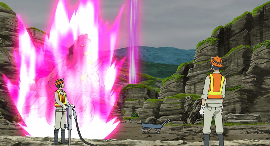 Als die Dynamax-Energie aus der Sammelanlage entwichen ist, hat ein im zugehörigen Bergwerk arbeitendes Montecarbo kräftig etwas davon abbekommen, sich dadurch in Gigadynamax-Montecarbo gewandelt und nun angefangen, zu randalieren. Ash und Delion, die dabei sind, die dynamaximierten Pokémon in Galar aufzuhalten und nach der Ursache dafür suchen, erreichen den Ort kurz darauf auf Glurak bzw. Dragoran und nehmen den Kampf mit Gigadynamax-Montecarbo auf.