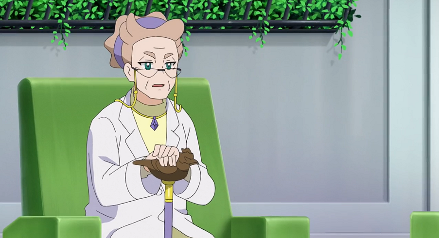 Bei einem Tee erläutert sie Goh weitere Details über das Dynamax-Phänomen in der Galar-Region. Die Dynamaximierung, die durch die Energie der sogenannten Galar-Partikel ausgelöst werden könne, ermögliche es den Pokémon, ihre innere Kraft zu zeigen. Auch die vom Himmel fallenden Wunschsterne würden solche Galar-Partikel enthalten und sammeln können. Mit ihnen sei es möglich gewesen, Dynamax-Bänder zu entwickeln, mit Hilfe derer man die Dynamaximierung kontrollieren könne.