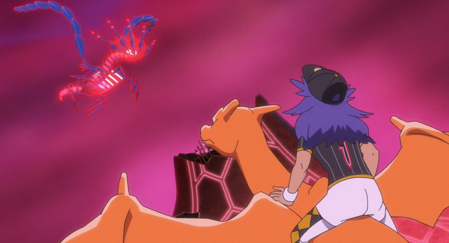 Mit Luftschnitt schafft es Glurak, Endynalos zu schwächen. Daher wagt Delion einen Versuch und wirft einen Hyperball auf das Legendäre Pokémon. Nach kurzem Bangen bricht Endynalos jedoch gewaltig aus dem Ball aus und beginnt, seine Unendynamax-Form anzunehmen.