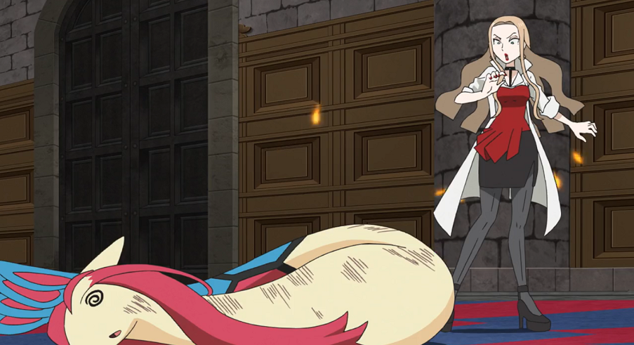 Während Delion mit seinem Glurak ernsthafte Probleme im Kampf gegen Endynalos hat, mag auch Ash und seinen Pokémon nicht der Durchbruch gegen Roses Pokémon gelingen. Riolu und Pikachu werden von Patinaraja und Tentantel solange vor sich her getrieben, bis sie sich auf einmal Rücken an Rücken treffen. Diesen Situation nutzt Ash aus: als Roses Pokémon angreifen, springen beide gleichzeitig hoch, sodass die beiden gegnerischen Pokémon sich gegenseitig attackieren.