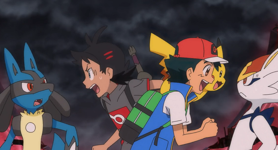 Ash erreicht die Turmspitze, wo sich Delion und Glurak weiter einen schweren Kampf mit Endynalos liefern. Kurz darauf stößt auch Goh hinzu. Beide trauen ihren Augen nicht, als sie Lucario bzw. Liberlo sehen und freuen sich über die Entwicklung der Pokémon.