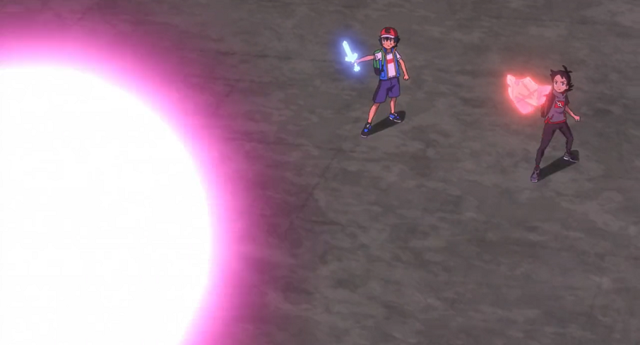 Goh nimmt nun einen seiner Pokébälle, um Endynalos zu fangen. Da der Ball auf einmal sehr groß wird, hilft ihm Ash, diesen auf Endynalos zu werfen. Tatsächlich bleibt das Pokémon diesmal im Ball. Ash und Goh sind voller Freude darüber. Zacian und Zamazenta verschwinden wieder, lassen Ash und Goh jedoch das rostige Schwert und den rostigen Schild zurück. Durch den Sieg über Endynalos nehmen auch sämtliche dynamaximierten Pokémon in der Galar-Region wieder ihre normale Form an. Delion bedankt sich bei Ash und Goh, die jedoch auf die Helden von Galar, Zacian und Zamazenta verweisen.