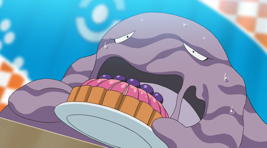 Auch Goh geht die Wahl taktisch an und entscheidet sich für Torte, da er zuvor bei der Verteilung der Kekse im Zelt registriert hat, dass Sleimok offenbar nichts Süßes mag. Somit tut sich Raffel leicht, einen Vorsprung zu erarbeiten. Einen kurzen Durchhänger kann es mit Hilfe einer Tamotbeere überwinden; durch den scharfen Geschmack des erlaubten Würzmittels kann es den süßen Geschmack neutralisieren und bekommt so wieder Appetit.