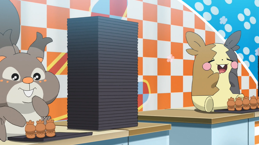 In diesem treten die Teilnehmer wieder alle gegeneinander an. Nun müssen sie die japanische Süßspeise Manjū in Flemmi-Form verspeisen. Mit dem Start des Finales beginnen Morpeko und Raffel, die einzelnen Stücke ratzfatz zu verschlingen, sodass sich schnell bei jedem die Tabletts stapeln. Nur Lohgock rührt die Süßigkeit nicht an. Es hat schwer damit zu ringen, dass die Manjūs in der Form seiner Vorentwicklung gestaltet sind und bringt es deshalb nicht übers Herz, sie zu essen. Daher steigt es gemeinsam mit seinem Trainer aus dem Wettbewerb aus, sodass nur noch Gohs Raffel und Team Rockets Morpeko verbleiben. Zu einem für Team Rocket sehr ungünstigen Zeitpunkt nimmt letzteres jedoch mitten im Finale seine Pappsattmuster-Form an, wodurch es abrupt aufhört zu essen. Da sich Team Rocket damit nicht abfinden will und ihm weiteres Essen aufdrängt, wird Morpeko wütend und schlägt Team Rocket mit seiner Aura-Rad-Attacke in die Flucht.