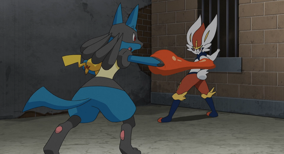 Liberlo, das mitbekommt, wie Team Rocket sich mit Pikachu aus dem Staub macht, ruft sofort Lucario zur Hilfe. Gemeinsam rennen die beiden Team Rocket hinterher.