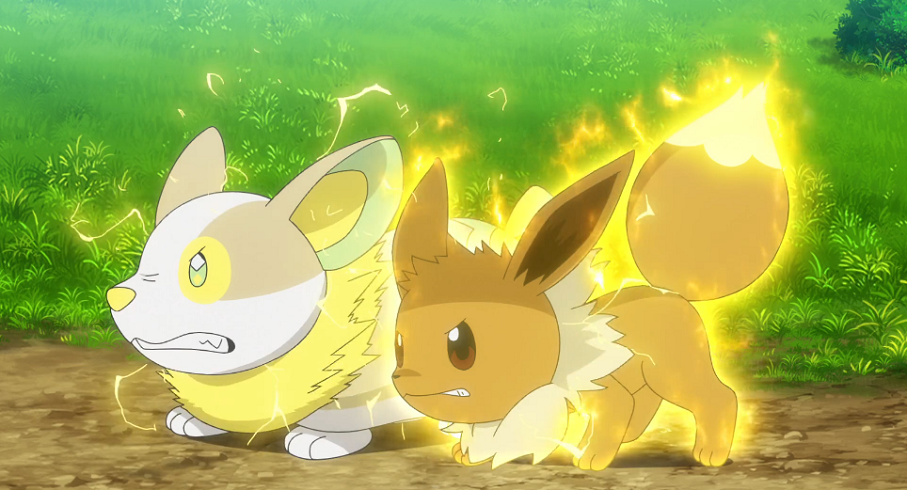 Kurz darauf legen die Forscher Evoli in ihrem Labor nacheinander zuerst einen Feuer- und dann einen Donnerstein hin. Trotz der Berührung beider Steine entwickelt sich Evoli nicht. Die Forscher, die sich wohl schon längere Zeit mit diesem speziellen Evoli und dessen Nicht-Entwicklung zu beschäftigen scheinen, fragen sich nach der Ursache.