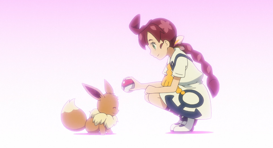 Als Chloe beginnt, sich an die Erlebnisse mit Evoli zurückzuerinnern, entreißt sich Evoli aus dem Arm der Forscherin, die es trägt, rennt zu Chloe zurück und springt in deren Arme. Die Forscherin erkennt, dass Evoli sie sehr zu mögen scheine. Sie erklärt, dass es sich bei ihr um ein sehr mysteriöses Evoli handle und sie sich einfach nicht entwickeln wolle. Möglicherweise zögere Evoli einfach, da sie noch nicht wisse, welchen Entwicklungsweg sie gehen möchte. Die Forscherin bietet Chloe an, sich um Evoli zu kümmern. In einem von Goh gereichten Pokéball fängt Chloe daraufhin Evoli und damit ihr erstes Pokémon überhaupt.