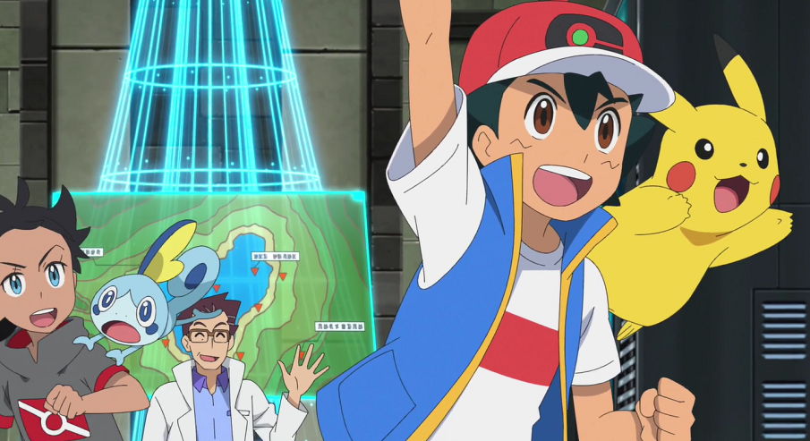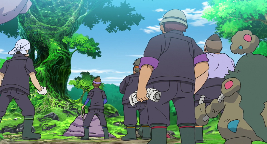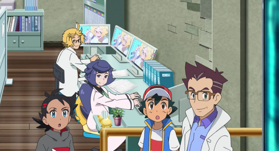 Ash, Christin, Goh, Officer Rocky, Pokémon-Jäger, Professor Kirsch, René