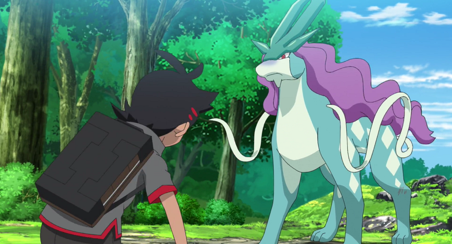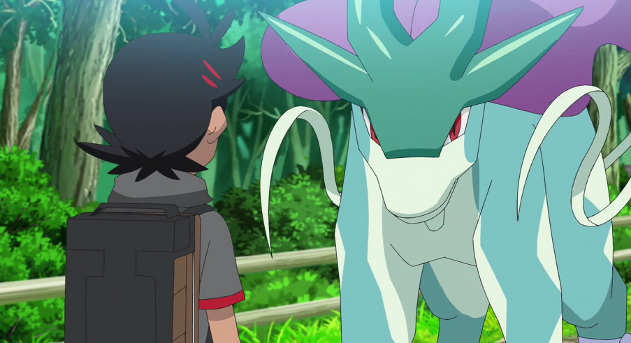 Nachdem der Polizeiwagen weggefahren ist, legt Goh Suicune in seinem Pokéball auf den Boden. Er erklärt, dass er es auf seinem Weg nicht aufhalten wolle. Suicune verlässt daraufhin seinen Pokéball und die beiden schauen sich einen kurzen Moment lang an. Dann tippt das Legendäre Pokémon den Ball mit seiner Schnauze wieder an, um darin zur Verwunderung von Goh und Ash zurückzukehren. Goh ist sehr glücklich darüber, dass sich Suicune dazu entschieden hat, sein Pokémon zu bleiben.