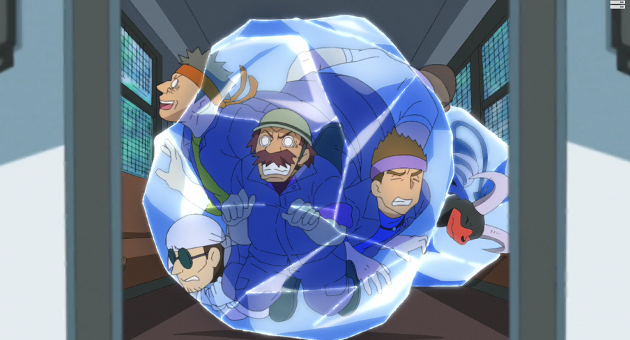 Nachdem Gohs Pokémon kurzen Prozess mit den Pokémon der Jäger gemacht haben, will das deren Boss nicht auf sich sitzen lassen. Er schickt sein Hundemon in den Kampf, das Gohs Traumato mit Knirscher sofort besiegt. Die Jäger beginnen nun erneut damit, Suicune mit Hilfe eines Netzes zu fangen. Verzweifelt muss Goh, der von den Jägern und deren Pokémon zurückgehalten wird, mit ansehen, wie die Jäger das sich im Netz wehrende Suicune zu misshandeln beginnen, ohne dass er noch etwas dagegen tun kann. Doch plötzlich taucht Ash auf, um seinem Freund zu helfen. Lucario und Pikachu können Goh befreien und gemeinsam stürzen sich deren Pokémon wieder in den Kampf, den das gefangene Suicune genau verfolgt. Dabei kann es mit ansehen, wie Ash, Goh und ihre Pokémon alles geben, jedoch große Probleme mit ihren Gegnern haben. Als Suicune erkennt, wie Gohs Liberlo trotz Vergiftung weiterkämpft, kann es ebenfalls neue Kraft schöpfen. Der Boss der Jäger will den Kampf nun beenden. Mit Knirscher lässt er sein Hundemon Ash, Goh und Liberlo attackieren. Im letzten Moment wird das auf sie zu springende Unlicht-Pokémon von einem Wind gebremst und anschließend mit einer mächtigen Hydropumpe davon geschossen. Ash und Goh stellen fest, dass sich Suicune selbst aus dem Netz hat befreien können und sie im Kampf unterstützen will. Mit seiner alten Kraft kann es die Pokémon der Jäger zusammen mit Goh besiegen und die Schurken schließlich mit seiner Eisstrahl-Attacke in einem Eisblock gefangen nehmen, ehe sie kurz darauf von Officer Rocky abgeholt werden.