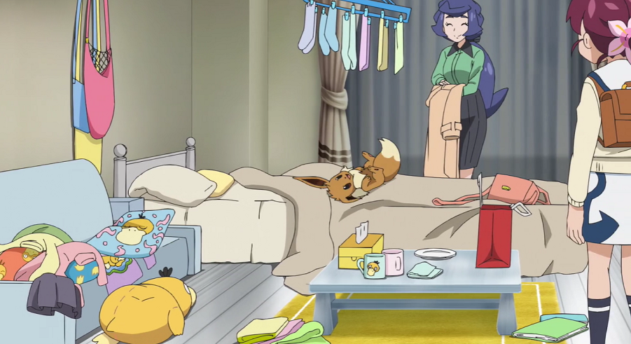 In Christins Wohnung angekommen, muss diese noch kurz für Ordnung sorgen, ehe Chloe und Evoli es sich gemütlich können. Chloe fallen natürlich sofort die vielen Enton-Fanartikel auf. Christin erklärt, leicht errötet, dass sie Enton-Merchandise beruhige und sie sich dieses deshalb gerne anschaue.