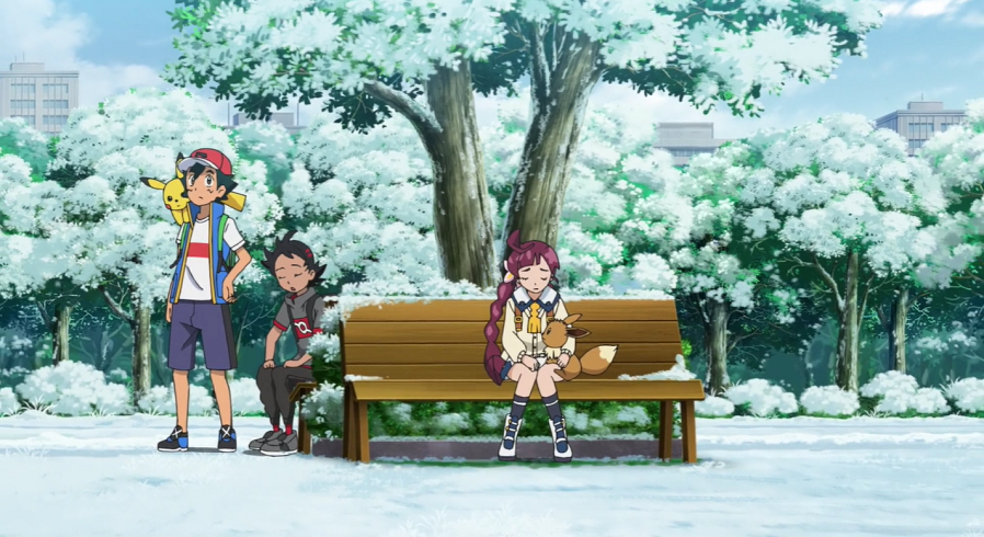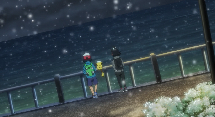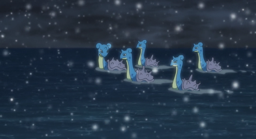 Zur gleichen Zeit halten Ash, Goh und Pikachu, deren Suche bisher erfolglos war und die aufgrund des kalten Wetters völlig verfroren sind, am Meer immer noch nach Eis-Pokémon Ausschau. Während Ash und Pikachu hungrig sind, möchte Goh zuerst nicht aufgeben, beugt sich dann aber Ash. Einen kurzen Augenblick später, nachdem die beiden die Aussichtsplattform verlassen haben, taucht auf dem Meer eine Gruppe von Lapras auf.