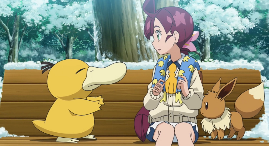 Christin ist gerade dabei, vor dem Labor Schnee zu schippen, als Chloe mit Ash, Goh, Pikachu, Evoli, dem Mann und dessen Enton angerannt kommt. Voller Freude berichtet sie Christin, dass sie fündig geworden sei. Als Christin sieht, was Chloe meint, beginnt sie zu weinen und auf die beiden zuzurennen. Allerdings läuft sie, anders als von Chloe gedacht, an dem Mann vorbei und weiter zu Enton, welches sie voller Freude umarmt. Christin bedankt sich bei Enton für dessen Hilfe mit dem warmen Schal und das Spielen im Schnee damals.