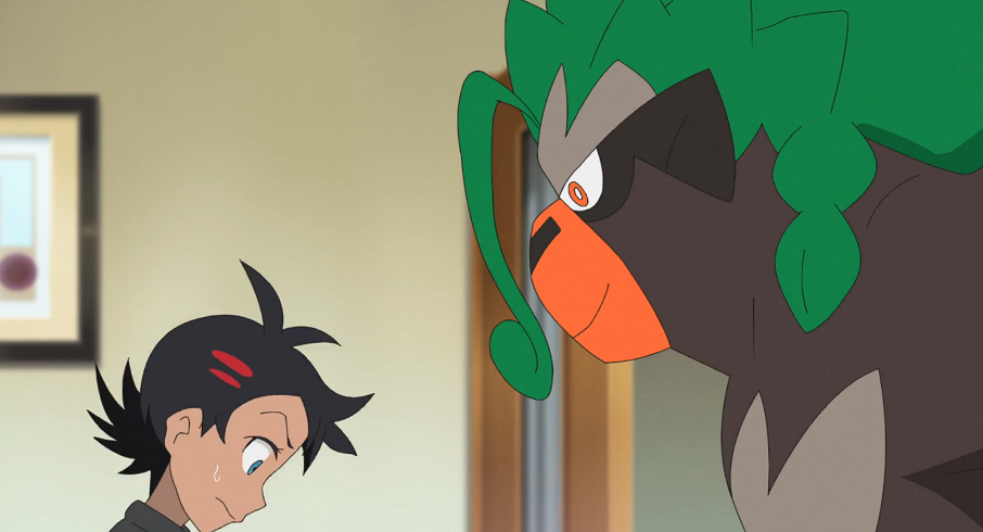 Im selben Moment betritt Pantimos das Zimmer, sodass Chimpep gleich ein neues Ziel ausmachen kann. Allerdings schafft es Pantimos, spielend leicht auszuweichen und wehrt auch Chimpeps daran anschließende Schlägel-Hiebe problemlos ab, sodass das Pflanzen-Pokémon schließlich aufgibt und jegliche Bewegungen einstellt. Anhand des Magenknurrens stellt Goh fest, dass Chimpep wohl ziemlich hungrig ist, weshalb sich alle zum Frühstücken aufmachen.