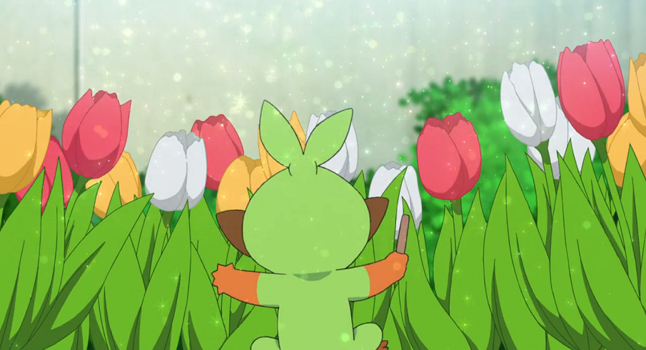 Voldi führt Ash und Goh erneut in den Park. Dort entdeckt Goh Chimpep inmitten der Tulpen, die es am Vortag wieder aufgerichtet hatte. Beide fallen sich freudig in den Arm.