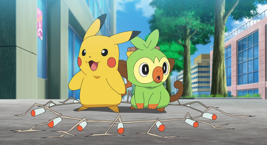 Ash und Goh sind aufgrund der Nachricht, dass Chimpep ein Pokémon von Team Rocket ist, etwas enttäuscht. Als sie Chimpep danach vor dem Laden fragen, reagiert dieses ängstlich und beginnt, sich hinter Pikachu zu verstecken. Im selben Moment jedoch fällt ein Fangnetz von oben auf die beiden Pokémon und Team Rocket gibt sich zu erkennen. Ash setzt umgehend Galar-Porenta ein, das zuerst Pikachu und Chimpep befreit, um dann Team Rocket mit Wirbler zu attackieren. Diese rufen nun Pelipper, das ihnen ihre Spezialmaschine bringt. Als sie diese drehen, fällt diesmal zum Erstaunen von James jedoch nur ein Pokéball heraus. Doch nicht nur das, der Ball ist auch leer. Vom Beipackzettel aus dem Ball entnehmen sie verwundert Informationen zu Chimpep, was sie sich nicht so richtig erklären können. Da Jessie Chimpep daraufhin im Spaß zurückruft und dieses tatsächlich wieder im Ball landet, treten die Schurken erst einmal verdutzt den Rückzug an, gegen den Ash und Goh nichts ausrichten können. Letzterer bemerkt traurig, dass Chimpep seinen Schlägel auf der Straße verloren hat.