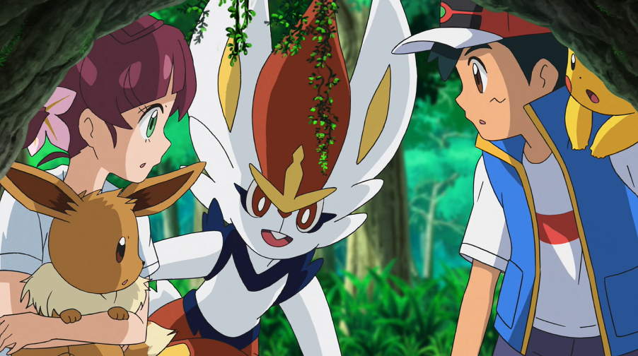 Derweil suchen Ash, Goh und Chloe im Park nach Phlegleon, können es aber nicht finden. Daher ruft Goh Liberlo zur Unterstützung bei der Suche.