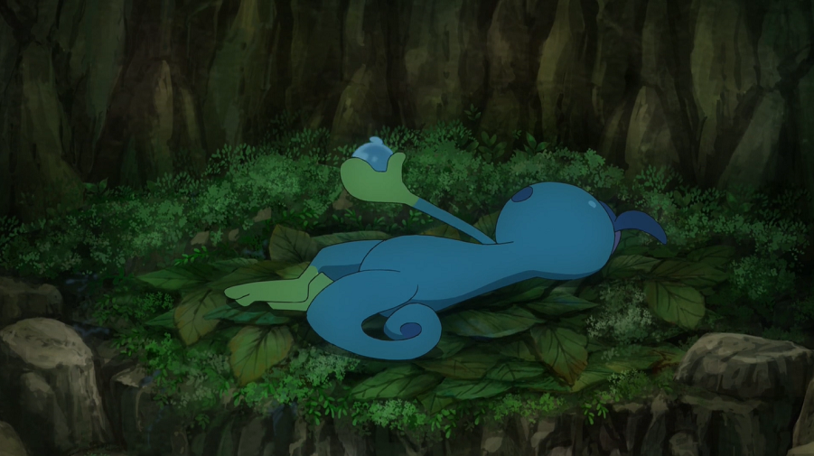 Ash, Goh und Chloe wundern sich, dass sie Phlegleon nirgendwo finden können. Liberlo erreicht die Gruppe und informiert sie darüber, Phlegleon gefunden zu haben. Es führt sie zu der Höhle, in der sich das Wasser-Pokémon befinden soll. Gemeinsam mit Chimpep wagt sich Goh in die enge und dunkle Höhle. Unterwegs bemerkt er einige von Phlegleons Wasserkugeln an der Decke hängen, die dieses mit seinen Händen bilden kann. Am Ende der Höhle finden sie schließlich das auf Blättern liegende und immer noch geknickte Phlegleon, das in seinen Händen weitere kleine Wasserbälle formt und diese als Aquaknarre gegen die Wand schießt.