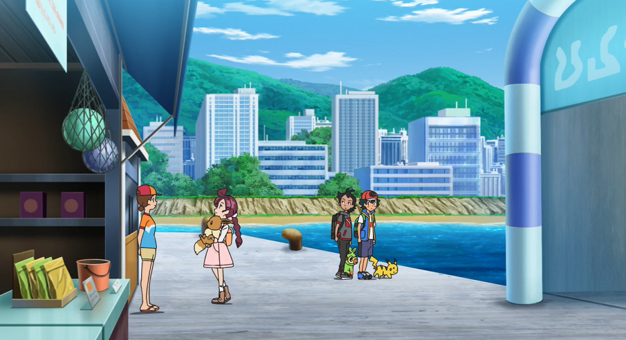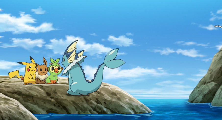 Dazu reisen Ash, Goh und Chloe mit ihren Pokémon nach Seegrasulb City in die Hoenn-Region. Auf dem Parcours-Gelände erwartet sie der Trainer des Aquana, Kiley, bereits beim Training. Nachdem die drei ihm zu seinem Erfolg gratuliert haben, ruft er sein Aquana herbei, das sich anschließend mit Evoli, Pikachu und Chimpep anfreundet und mit ihnen schwimmen geht. Kiley schlägt den dreien vor, am Junior-Rennen teilzunehmen, das am folgenden Tag stattfinden soll. Ash entschließt sich dazu, mit seinem Pescragon an den Start zu gehen, während Goh sich für Jugong entscheidet. Da es laut Kiley auch erlaubt sei, mit einem Nicht-Wasser-Pokémon anzutreten, will Chloe mit ihrem Evoli mitmischen.