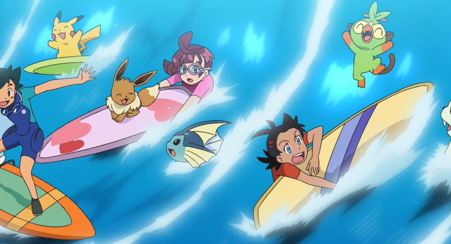 Im Labor verfolgen Ash und Goh begeistert die Übertragung eines Rennen des Pokémon Marine-Wettbewerbs, bei dem Trainer mit ihren Wasser-Pokémon einen Hindernisparcours überwinden müssen. Auch Chloes Evoli ist Feuer und Flamme für das Geschehen und fiebert mit einem Aquana mit, das schließlich tatsächlich das Rennen gewinnt. Da Chloe mehr über Evoli und dessen Entwicklungen lernen möchte und Christin den Trainer des Aquana von der Universität kennt, ergibt sich für Chloe und Evoli die Möglichkeit, die beiden zu treffen.