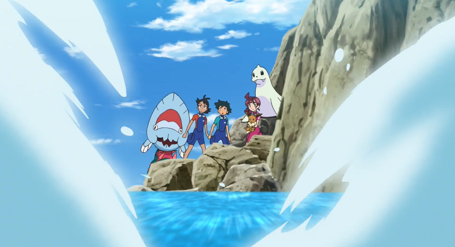 Schließlich entschuldigt sich Jugong bei Aalabyss. Gohs Pokémon muss dabei feststellen, dass eines der Saganabyss und Aalabyss ein Paar sind.