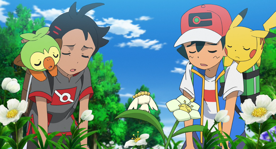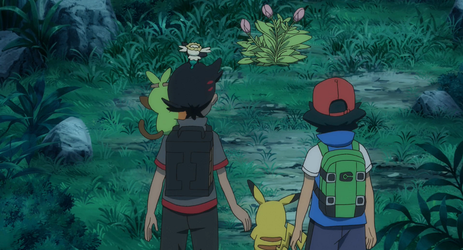 Nach einiger Zeit, als die Sonne bereits am Untergehen ist, müssen Ash und Goh enttäuscht feststellen, dass sie keinerlei Spur von den Blumen haben finden können. Lediglich pinke, noch nicht blühende Blumen haben sie unterwegs finden können. Da laut der Forscherin die weißen Blumen wohl nur sehr schwer wachsen, vermuten sie, dass den besagten Blumen etwas zugestoßen sein müsse.