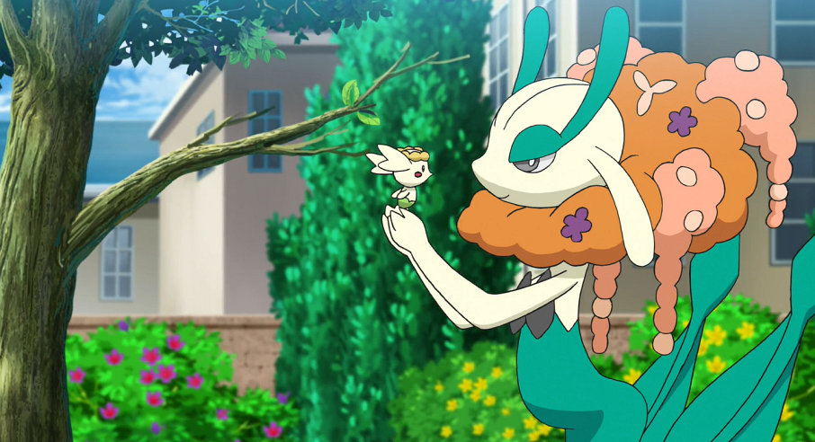 Da nun nur noch eine Blume übrig ist, versucht Flabébé Grasfeld einzusetzen, wodurch es sich zu Floette entwickelt. So gelingt es ihm, ganz nach dem Vorbild von Florges, die Attacke einzusetzen und so zwei weitere Blumen zu erschaffen. Goh erinnert sich an die Blumenforschin und ihr Florges, das sich um seine eigenen Blumen kümmert und erkennt daher, dass sein Floette gerne bleiben und die weißen Blumen beschützen möchte. Er bestärkt sein Pokémon in diesem Vorhaben.