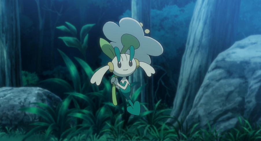 Als Flabébé, immer noch auf Gohs Kopf sitzend, in den Himmel schaut, sieht es ein Leuchten, woraufhin es Goh sofort anleitet, kehrtzumachen. So landen sie schließlich, als es bereits dunkel ist, wieder bei den pinken Blumen, die sie zuvor gefunden. Als nun jedoch eine Wolke am hellen Mond am Himmel vorbeigezogen ist, werden die pinken Blumen vom hellen Mondlicht bestrahlt. Dadurch werden sie weiß und beginnen zu blühen. Ash, Goh, Pikachu, Chimpep und Flabébé sind beeindruckt von dem Schauspiel. Flabébé wählt sich eine der Blumen aus, die es anschließend glücklich pflückt. Zudem taucht noch ein weiteres Flabébé auf, das zum ersten Mal eine Blume zu pflücken scheint und sich fröhlich auf dieser davon macht.