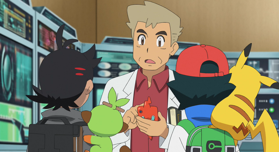 Professor Eich berichtet Ash, dass seine Pokémon ihn bereits erwarten. Während Ash sich gleich zu diesen aufmacht, grübelt Goh über das Projekt Mew.