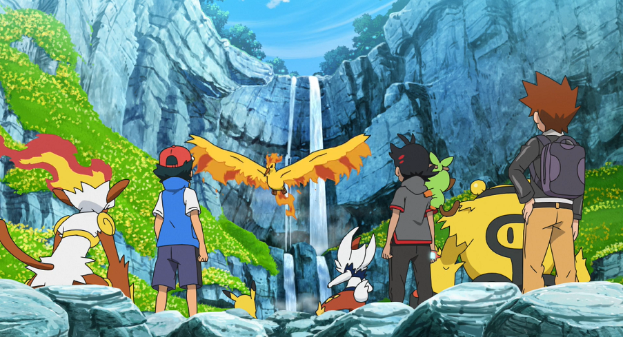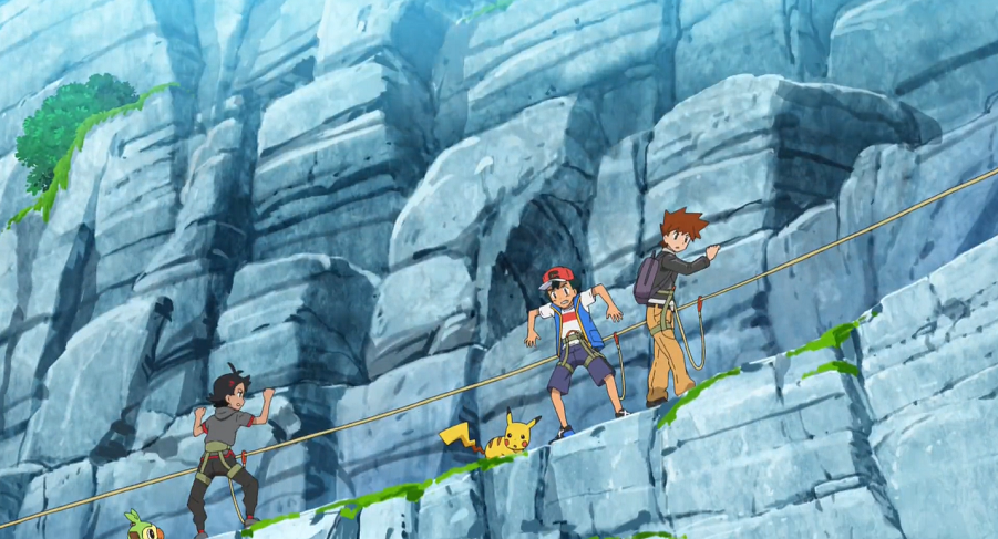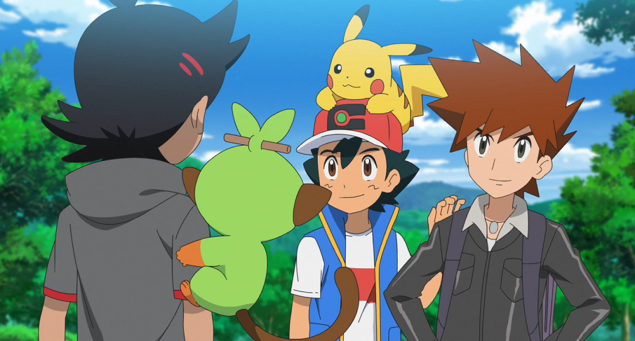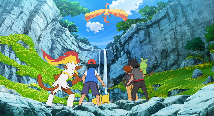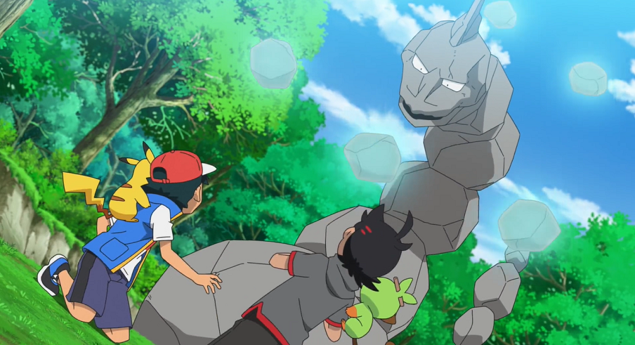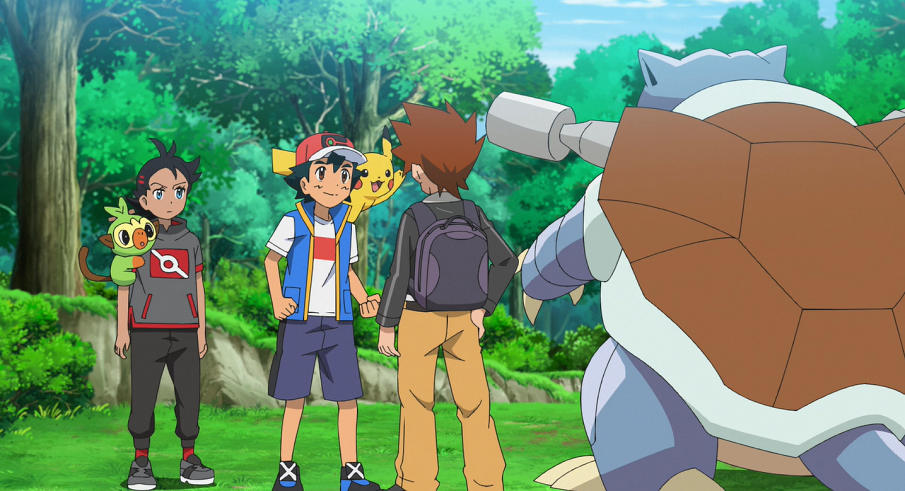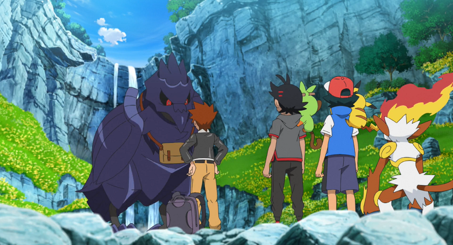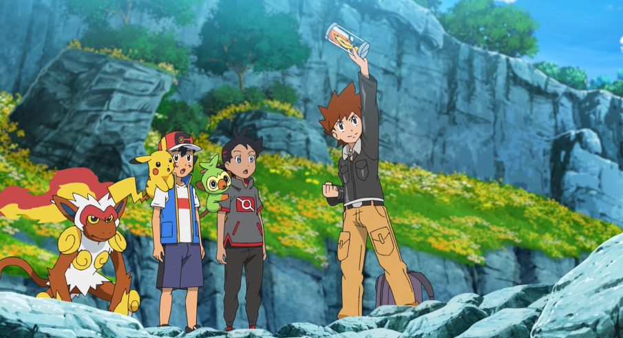 Die Suche ist jedoch erst einmal nicht von Erfolg gekrönt. Unterwegs bemerkt Goh auf einem Baum ein wildes Tauboga, das er aber erfolglos versucht zu fangen. Als dieses aus dem Fangball ausbricht, wirbelt es die beiden mit seiner Windstoß-Attacke davon und direkt gegen ein angriffslustiges Onix. Auch dieses versucht Goh zu fangen, scheitert jedoch erneut, sodass Onix zu einem weiteren Angriff ansetzt. Im genau richtigen Moment wird es allerdings von der Hydropumpe eines Turtoks getroffen, woraufhin es die Flucht antritt. Ash bemerkt, dass dieses Turtok Gary gehört, der seinen alten Rivalen erfreut begrüßt. Er berichtet, dass er aktuell durch die Welt reise, um Pokémon zu erforschen und nun kurz in der Kanto-Region vorbeischaue. Ash macht Goh und Gary miteinander bekannt. Gary ist sehr erfreut Goh kennenzulernen, provoziert diesen allerdings ein wenig, indem er dessen Fähigkeiten als Trainer in Frage stellt und Zweifel äußert, ob er ein angemessener Weggefährte für Ash sei. Auf Ashs Nachfrage erzählt Gary, dass er aktuell in Kanto unterwegs sei, um das Legendäre Pokémon Lavados zu finden. Dessen Erscheinen vermute er durch seine Berechnungen in Kürze ganz in der Nähe. Nachdem Ash von seinem Panferno berichtet hat, äußert Gary die Vermutung, dass Panferno möglicherweise auch auf dem Weg dorthin sei. Daraufhin machen sich Gary und Ash sofort auf den Weg. Goh, angestachelt von Garys Worten, versucht mit den beiden Schritt zu halten.