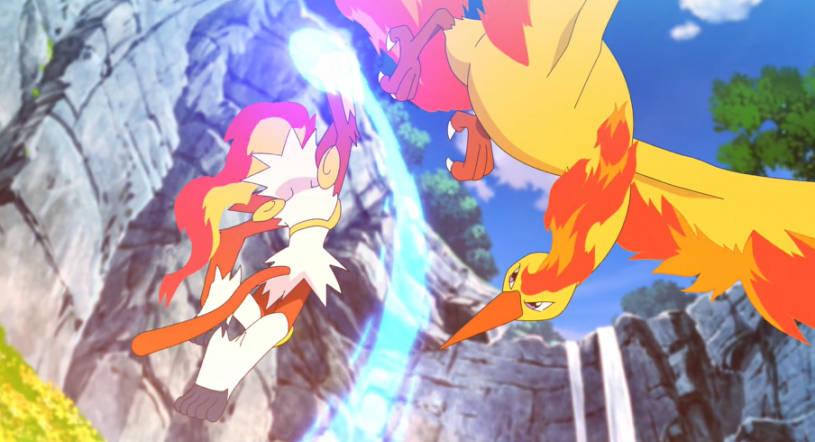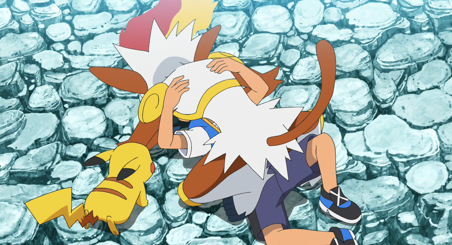 Da Lavados Ashs Herausforderung annimmt, beginnt dieser das Flammen-Pokémon mit Panferno zu attackieren. Allerdings kann dieses Panfernos Angriffen ausweichen und trifft Ashs Pokémon mit seinen Luftschnitten entscheidend.
