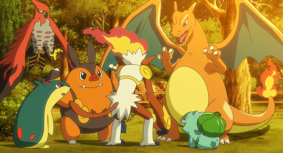 Als Ash draußen aus der Ferne bereits sein Bisasam und Glurak erblickt, stürmt er freudig auf die beiden zu. Es dauert nicht lange, bis sämtliche seiner Pokémon dazustoßen und sich mit Ash gemeinsam über das Wiedersehen freuen. Professor Eich erklärt ihm anschließend allerdings, dass er seit einigen Tagen Ashs Panferno vermisse. Er und Tracey haben es bereits gesucht, allerdings nirgendwo finden können. Auffällig und ungewöhnlich sei gewesen, dass es im Vorfeld jeweils gegen Ashs andere Feuer-Pokémon gekämpft habe. Ash vermutet daher, Panferno könne trainiert haben, was jedoch keine Erklärung für sein Verschwinden sei. Gemeinsam machen sich Ash und Goh mit Pikachu und Chimpep auf die Suche nach Panferno.