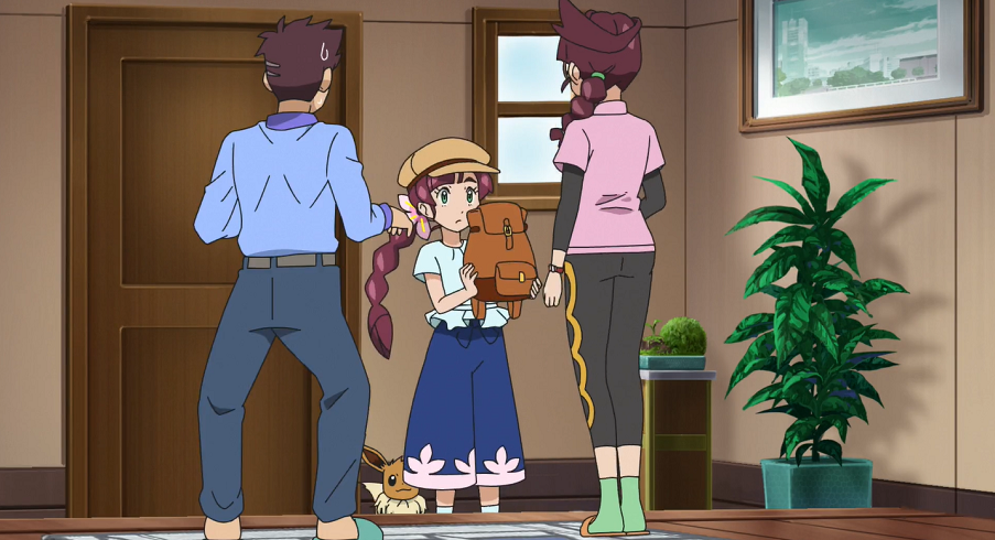 Am nächsten Morgen muss Professor Kirsch seiner Tochter beim gemeinsamen Frühstück mitteilen, dass der Familienurlaub aufgrund des bald schlüpfenden Pokémon-Eis in seinem Labor, wo er unbedingt dabei sein wolle, abgesagt werden müsse. Da auch ihre Mutter einen kurzfristigen Auftrag für eine Illustration erhalten habe und ihr Bruder mit Freunden in ein Sommercamp gehen wolle, schlägt ihr Vater Chloe vor, ebenfalls nach Sinnoh zu reisen, um dort Ash und Goh zu unterstützen. Chloe aber beschließt, ausgerüstet nur mit einem dem Nötigsten in einem alten Rucksack ihrer Mutter, sich mit Evoli selbstständig auf eine Reise in der Sinnoh-Region zu begeben. Ihre Eltern freuen sich für ihre Tochter über diese Gelegenheit.