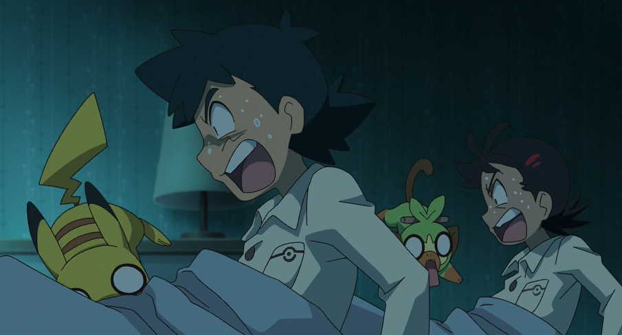 In der Nacht ereilt Ash und Goh ebenfalls ein gemeinsamer Albtraum, in dem Professor Kirsch zusammen mit Christin und René ein eigenes Schurkenteam gegründet hat. Beide werden dadurch panisch aus dem Schlaf gerissen. Gedankenschnell eilen sie nach draußen aus dem Pokémon-Center, in dem sie übernachten, und sehen dort Darkrai, das einen Augenblick später jedoch wieder verschwindet.
