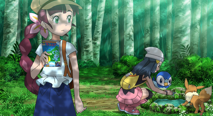 Ash und Goh nehmen derweil weiter die Spur von Darkrai auf und befragen dazu Bewohner:innen von Städten. Für Goh ergibt sich dadurch ein Muster in der Form, dass Darkrai offenbar um einen Wald herumwandere und dabei die um diesen herumliegenden Städte besuche. Beide beschließen, sich den Wald genauer anzuschauen.