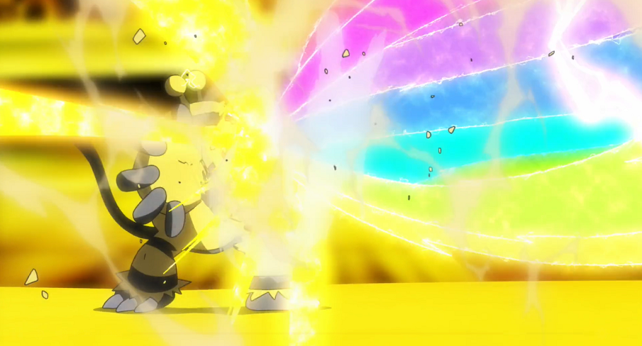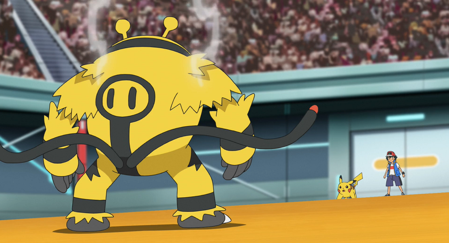 Pikachu signalisiert Ash, dass es bereit für ihre gemeinsame Z-Attacke ist. Daraufhin wirft ihm Ash seine Kappe zu und die beiden beginnen mit Hilfe des Z-Kristalls mit der Ausführung der Z-Attacke, auf die auch Volkner bereits sehr gespannt ist. Im Anschluss an die Choreografie der beiden setzt Pikachu Tausendfacher Donnerblitz ein und schickt so gewaltige bunte Donnerblitze auf Elevoltek. Volkner weist sein Pokémon an, die Attacke mit seiner Starthilfe-Fähigkeit zu absorbieren, was es zuerst versucht. Doch aufgrund der gewaltigen Stärke der Attacke kippt Elevoltek schließlich K.O. zu Boden. Das Stadion tobt und Ash sowie Pikachu freuen sich riesig über ihren Sieg. Nachdem die Rotom-Drohne Ash zum Sieger ausgerufen hat, verkündet sie sogleich dessen aktualisiertes Ranking: Durch den Sieg klettert er nun auf Rang 64.