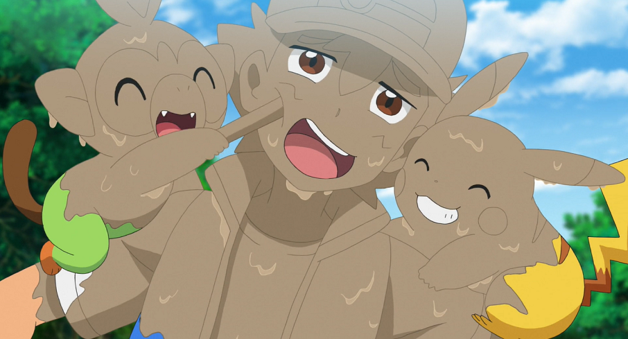 Auf dem Rückweg zum Labor landen Pikachu und Chimpep in einer kleinen Schlammpfütze. Während Ash von den beiden Pokémon ebenfalls dreckig gemacht wird, wundert sich Goh über die Schlammpfütze an dieser Stelle.