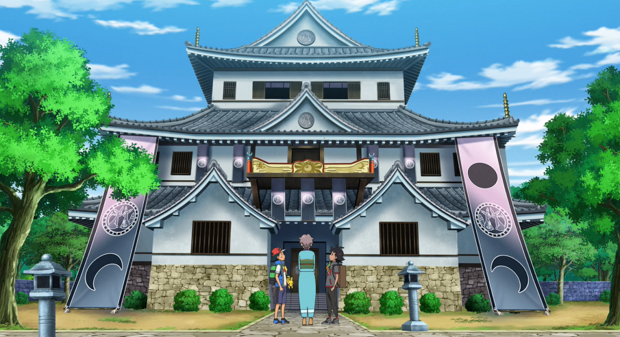 Ash und Goh erfahren derweil von einer älteren Frau, die plötzlich hinter ihnen steht, dass Psiana und Nachtara einst den Schlossherrn beschützt hätten, als dieser angegriffen worden sei. Daher seien die beiden Pokémon nun im Wappen des Schlosses zu sehen, das ganz im Zeichen der Sonnenfinsternis stehe. Die Frau stellt sich ihnen anschließend als aktuelle Schlossherrin vor. Allerdings wolle sie heute von dieser Position zurücktreten. Ash und Goh bemerken schließlich, dass Chloe und Evoli verschwunden sind.