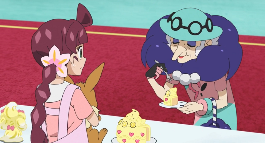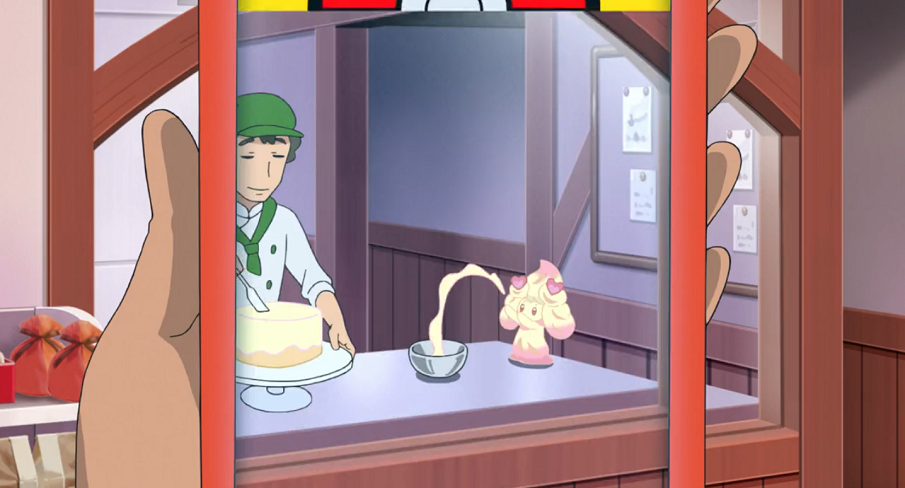 In Fairballey angekommen, machen die drei erst einmal einen Abstecher in eine Konditorei. Als sie die leckeren Kuchen dort genießen, fällt ihr Blick auf den Konditor und dessen Pokusan, das ihm bei der Zubereitung hilft. Chloe erklärt, dass der Geschmack von Pokusans Sahne davon abhänge, wie gut es sich mit seinem Trainer verstehe.