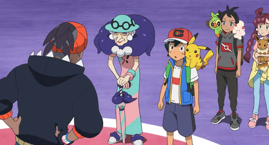 Chloe, Goh und Roy haben sich auf der Tribüne platziert, um von dort den Kampf zu verfolgen. Delion stellt sich als Schiedsrichter zur Verfügung. Beide treten jeweils mit einem Pokémon an. Während Ash Pikachu in den Kampf schickt, entscheidet sich Papella für Pokusan.