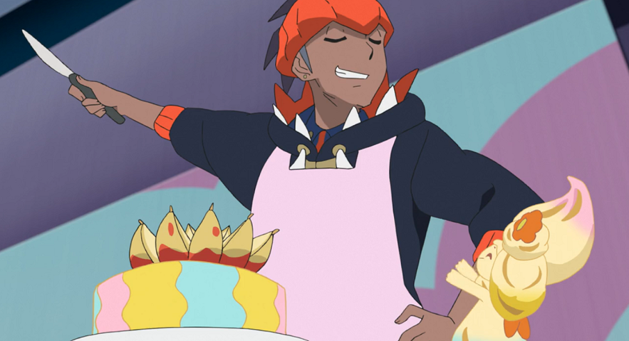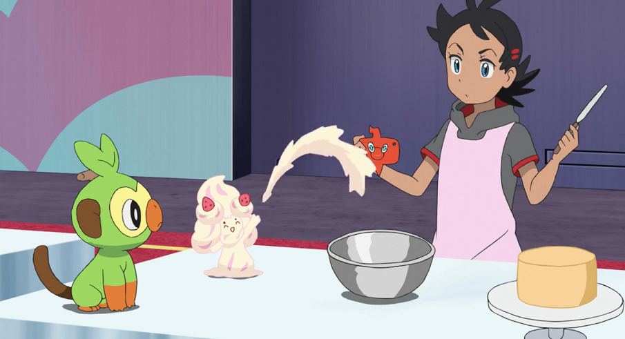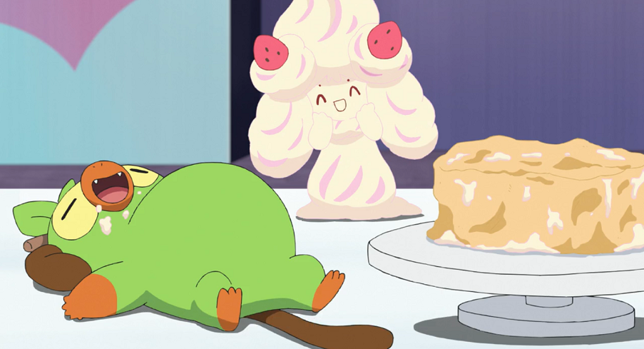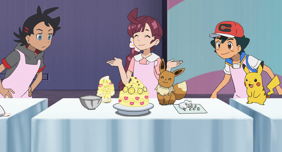 Nachdem alle fertig geworden sind, kostet Papella reihum von den Torten und nimmt diese unter die Lupe. Goh macht sich dabei Hoffnung, dass die Sahne, die Chimpep offensichtlich sehr geschmeckt habe, ein gutes Zeichen sei, dass er und sein Pokusan ein gutes Team bilden werden. Als sie Ashs sehr üppig dekorierte Torte probiert, ist sie von deren mysteriösem Geschmack fasziniert. Spontan beschließt sie, Ash deshalb zu einem Kampf herauszufordern, da sie von ihm aufgrund der Torte auch sehr faszinierende Kämpfe erwartet.